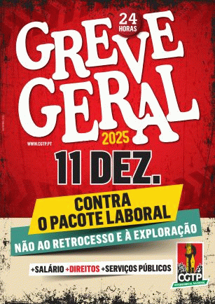 Greve geral: 11 Dez. 2025 : Contra o pacote laboral : não ao retrocesso e à exploração : + salário, + direitos, + serviços públicos [Material gráfico] / CGTP-IN