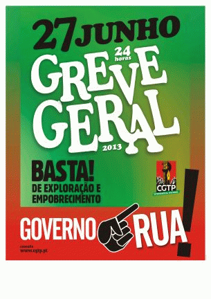 Greve geral : 27 Junho 2013 : 24 horas : Basta! De exploração e empobrecimento : governo, rua! [Material gráfico] / CGTP-IN